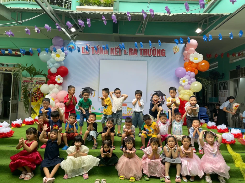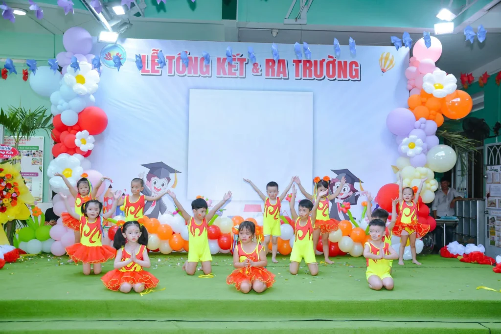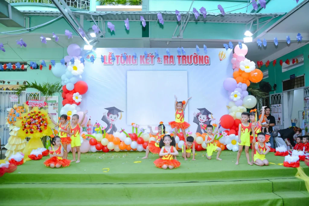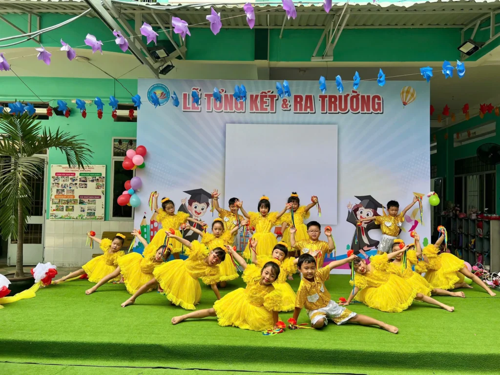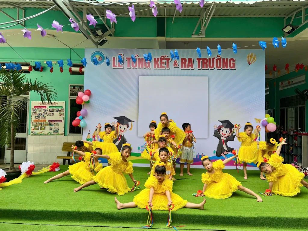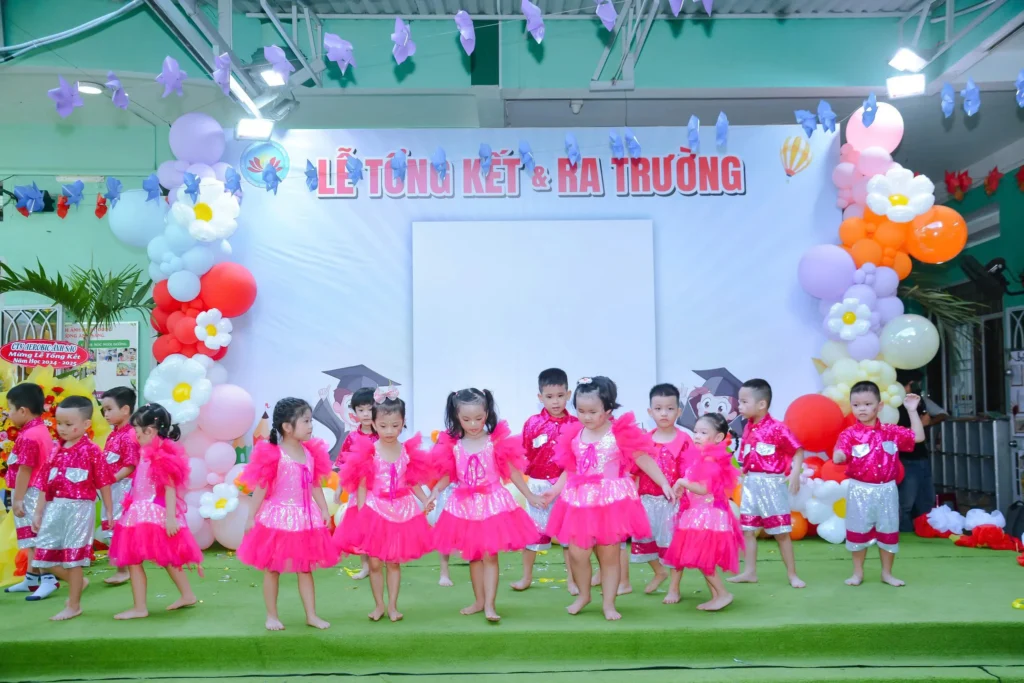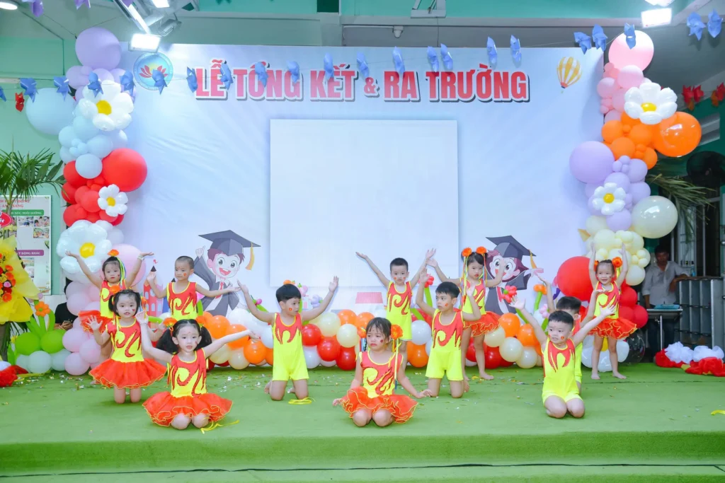Buổi lễ tổng kết năm học của các bé lớp Mầm và lớp Chồi diễn ra trong không khí vui tươi và rộn ràng. Các em nhỏ diện trang phục gọn gàng, nụ cười rạng rỡ, háo hức tham gia buổi lễ đặc biệt đánh dấu một năm học nhiều niềm vui. Các anh chị lớp Lá đã gửi đến các em một tiết mục múa thật sinh động như lời chúc các em luôn chăm ngoan, học giỏi và mau lớn. Những động tác múa uyển chuyển, lời nhạc vui tươi đã khiến các bé Mầm và Chồi vô cùng thích thú. Đây không chỉ là phần trình diễn văn nghệ, mà còn là sự kết nối yêu thương giữa các lớp, thể hiện tinh thần đoàn kết và tình cảm anh chị em trong mái trường thân yêu.