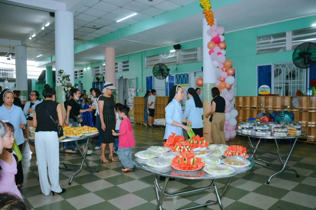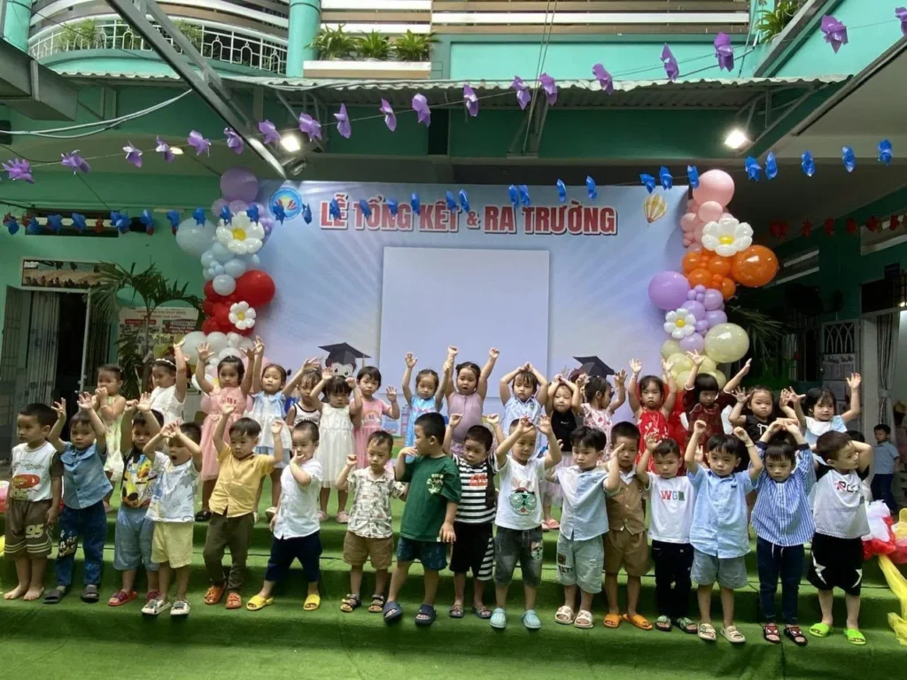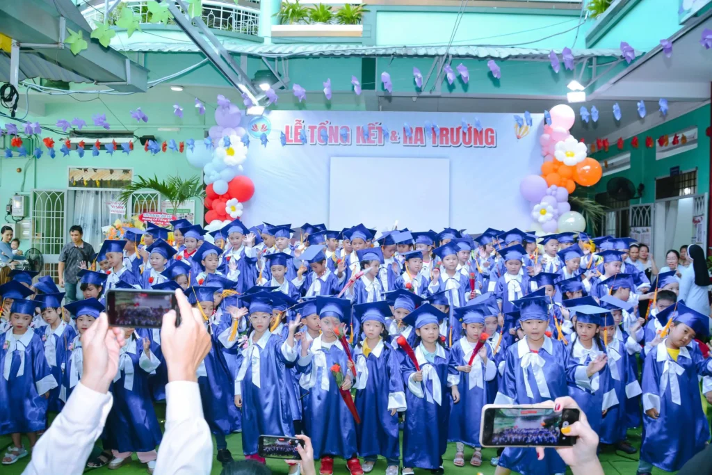 Cuối buổi lễ, tất cả các bé, phụ huynh và giáo viên cùng nhau tham gia bữa tiệc buffet ngọt đầy ấm cúng. Những chiếc bánh nhỏ xinh và các món ăn nhẹ do chính tay các cô giáo và phụ huynh chuẩn bị đã làm cho bầu không khí thêm phần gần gũi, thân tình. Buổi lễ ra trường khép lại trong niềm hân hoan, lưu luyến và tự hào – đánh dấu một bước ngoặt đầu tiên trong hành trình trưởng thành của các bé lớp Lá.